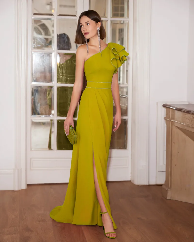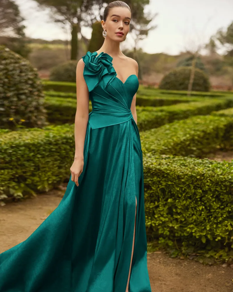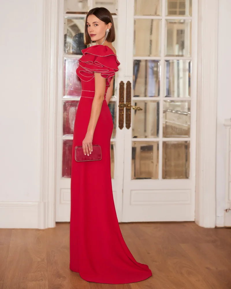 バルセロナ発のRosa Claráのイブニングドレスは、クラシカルな美しさにワーキング世代のファッショントレンドを生かしたデザインとスペインならではの発色の美しさに目を奪われる上質なドレス。